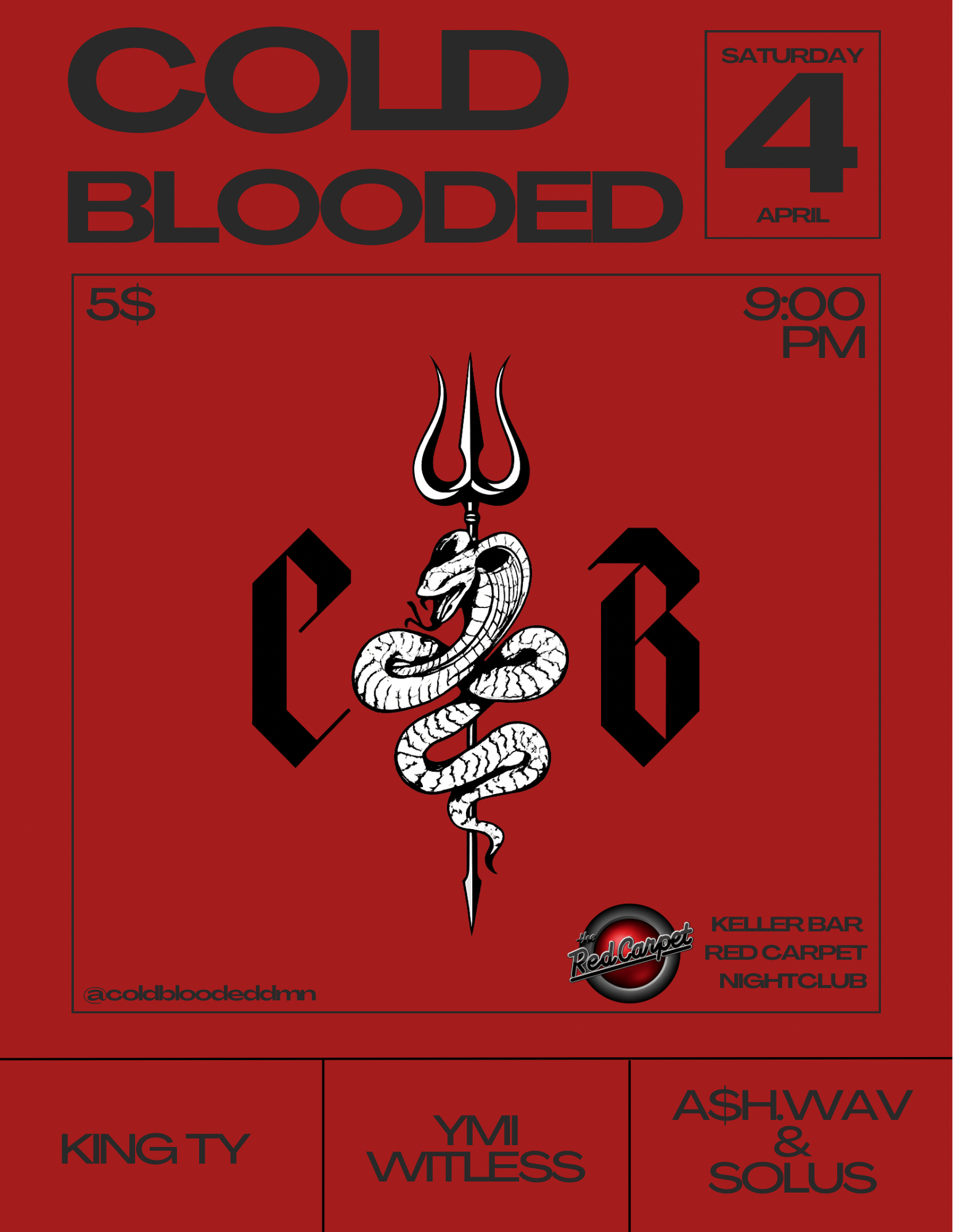April 11th! Red Carpet 18+ Show! Kickin off 2026 with a bang! Ticket/table link listed. Doors: 8:00 Show: 8:30 Advanced Ticket: $10 Door: $15 We’re stoked to have the boys from Borrowed Time who won the battle of the bands opening up! Let’s get it/let’s go/let’s rock