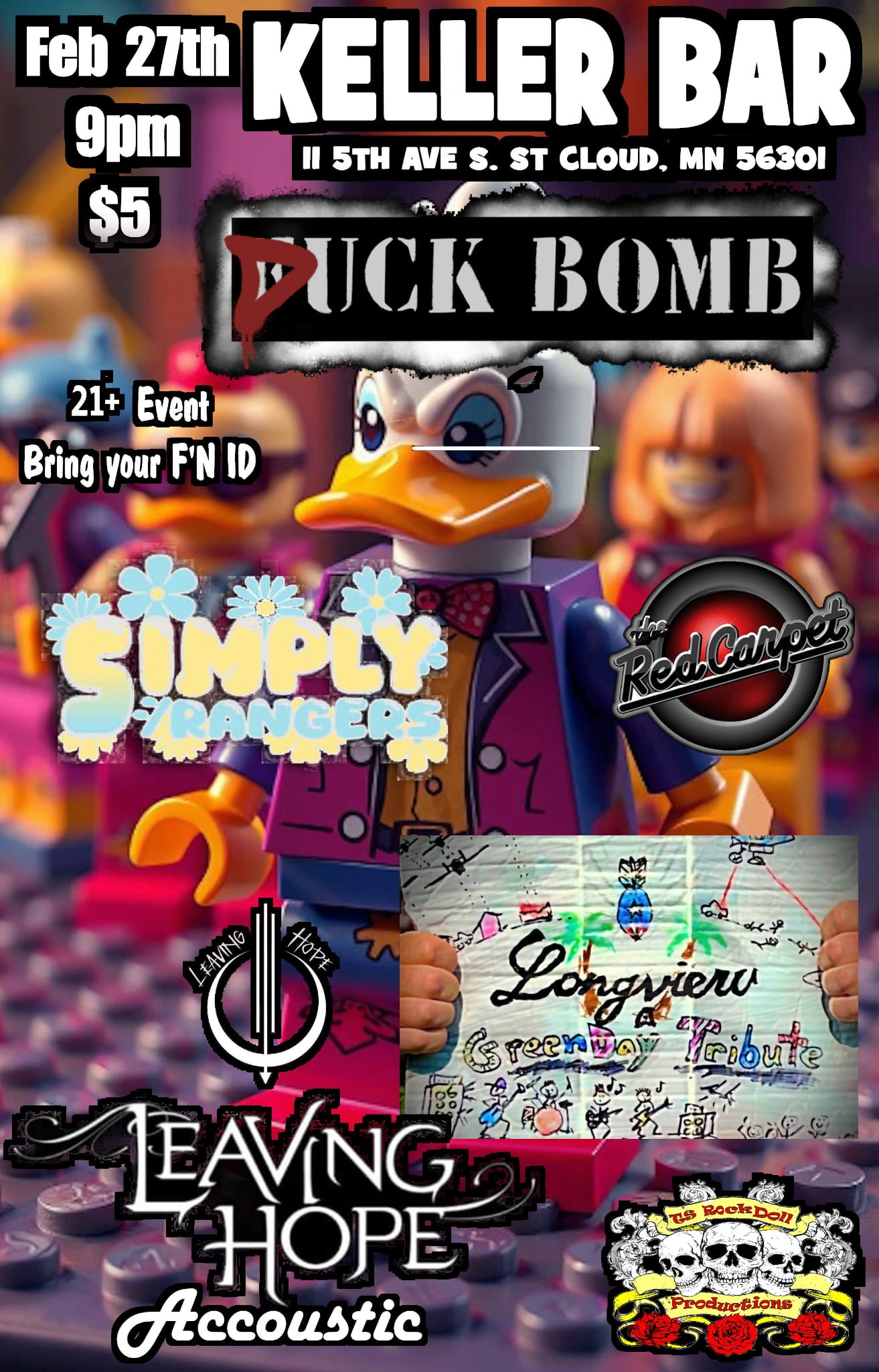 In the Keller: Feb. 27th Duck Bomb, Longview (Green Day Tribute), Simply Strangers, Leaving Hope (Acoustic) Show: 9 PM Cover: $5