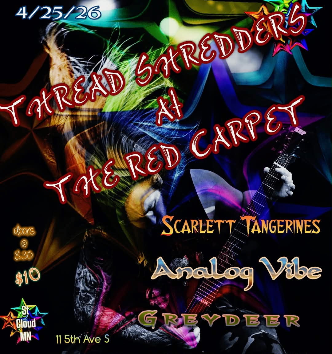 Analog Vibe: Minneapolis-based band delivering a diverse set of classic and modern rock tunes that is sure to keep audiences of all ages engaged and dancing. Greydeer: Minnesota based dreamo @kaeden.stevens 🎸🎤 @vince.livecchi 🥁 @clemandtsukii Scarlett Tangerines: alternative rock band from Minneapolis, MN TICKETS COMING SOON!